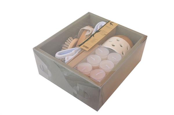 Bambum Belize Naturel Spa Seti, seramik ve bambu şıklığını evinize getirecek. Bambu altlıklı seramik mumluk, süngerli ve örgülü kese, saç fırçası, kese ve mumlardan oluşan Belize, spa ve masaj keyfinizi zirveye çıkaracak.