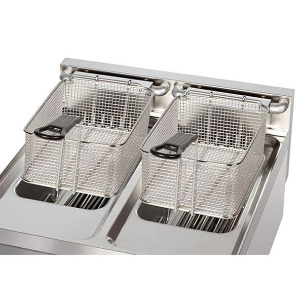 Paslanmaz çelik basket Kızartmadan sonra yağın süzülmesi için askı mekanizması mevcuttur.