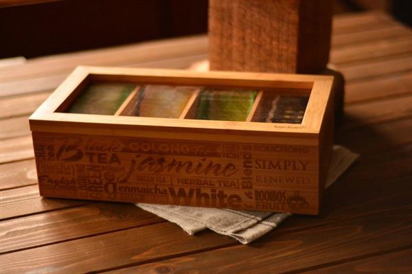 Bambum Jansen 4 Bölmeli Çay Kutusu, geniş ve sağlam yapısı, şeffaf kapağı, bambudan mamul bölme duvarları ve 4 bölmeli tasarımı sayesinde poşet çaylarınızı ilk günkü tazeliğinde korurken şık ve zengin duruşu ile kullanım alanlarınıza zarafet katacak. Jansen’in dış yüzeyindeki lazer yakma tipografik desenler mutfağınıza yeni bir soluk getirecek.