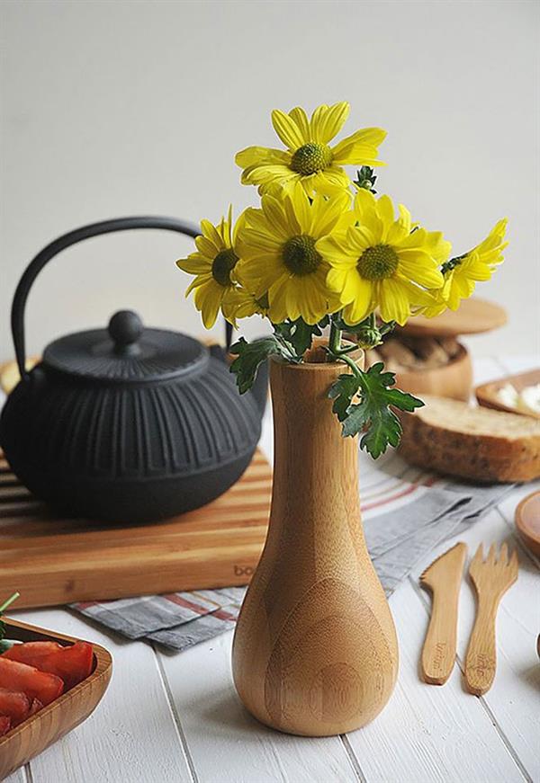 Plastik çiçeklerin yapaylığından kurtulun. Masif bambudan üretilen Bambum Lotus Vazo ile sofralarınızı ve kahve sunumlarınızı taze çiçekler şenlendirsin. İki boyu bulunan Lotus, sofralarınızın doğadan gelen şıklığını tamamlayacak.