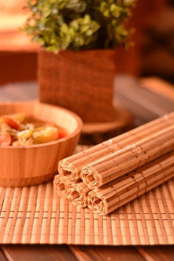 İncecik bambu çubuklardan üretilmiş Bambum Servizio Amerikan Servis, 45 cm genişliği ile geniş ve şık bir servis olarak hizmetinizde. Bambunun doğallığıyla ve 6 farklı desen seçeneğiyle masanızı donatan Servizio, sağlıklı sofralarınızın önemli üyelerinden olacak. Servizio’yu dilerseniz sushi sarmak için sushi mat olarak da kullanabileceksiniz.